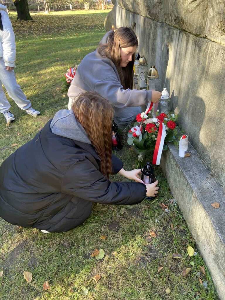 Nasza wizyta miała na celu upamiętnienie 107. rocznicy odzyskania przez Polskę Niepodległości. Złożono wieniec i zapalone znicze przy Pomniku Centralnym, a także bezpośrednio nas grobach poległych żołnierzy.