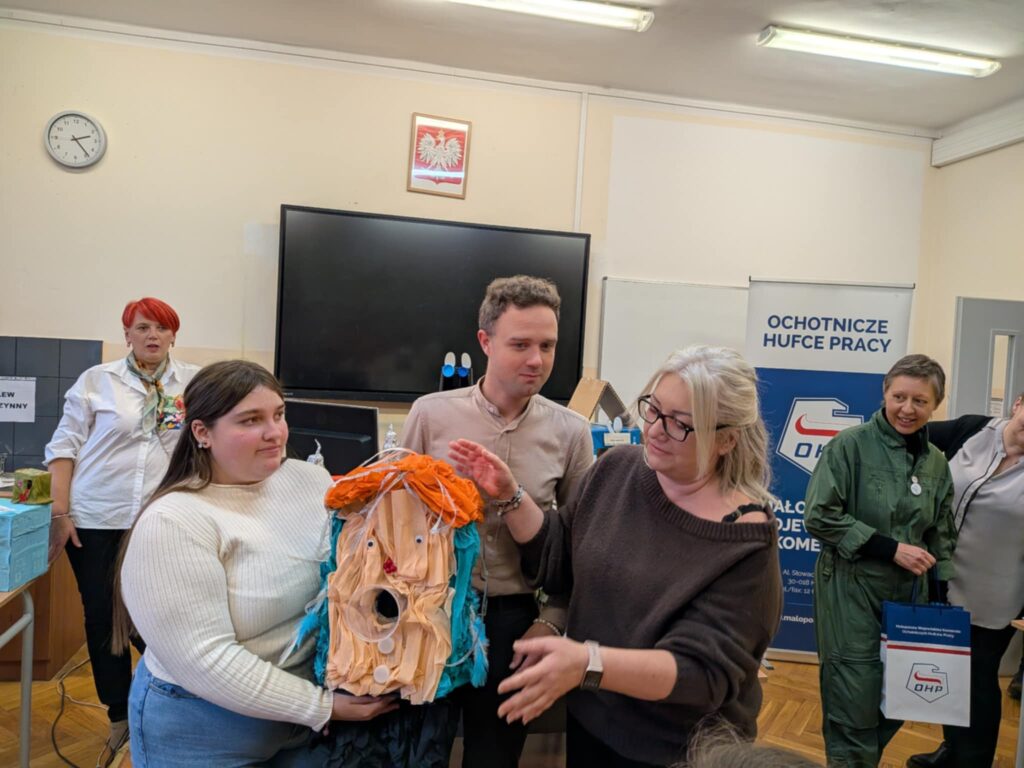 22 listopada 2025 r. w Zespole Szkół Zawodowych Nr 2 na os. Szkolnym w Krakowie odbył się Wojewódzki Konkurs Ekologiczny Młodzieży OHP „Karmnik, Budka dla ptaków z recyklingu”, który zgromadził młodych entuzjastów ekologii z całej Małopolski. Organizatorem wydarzenia była Małopolska Wojewódzka Komenda OHP i Hufiec Pracy 6-5 w Krakowie. Jego główną ideą było promowanie kreatywnego podejścia do ponownego wykorzystania odpadów oraz wzmacnianie świadomości ekologicznej wśród uczestników. Centrum Kształcenia i Wychowania OHP w Tarnowie reprezentowała Yana Fediuk, która zdobyła maksymalną liczbę punktów – 90 na 90, zapewniając sobie I miejsce w konkursie . Yana stworzyła niezwykły karmnik z różnorodnych materiałów wtórnych, nadając im nowe życie, dzięki swojej pomysłowości i zaangażowaniu. Jej udział w konkursie udowodnił, że kreatywność, własna praca oraz dbałość o naturę mogą przynieść wyjątkowe efekty. Poziom konkursu okazał się niezwykle wysoki, a uczestnicy musieli włożyć dużo pracy i czasu, aby odpowiednio przygotować się do rywalizacji. Składamy serdeczne gratulacje naszej wychowance oraz dziękujemy za poświęcenie, zaangażowanie i wysiłek włożony w udział.
