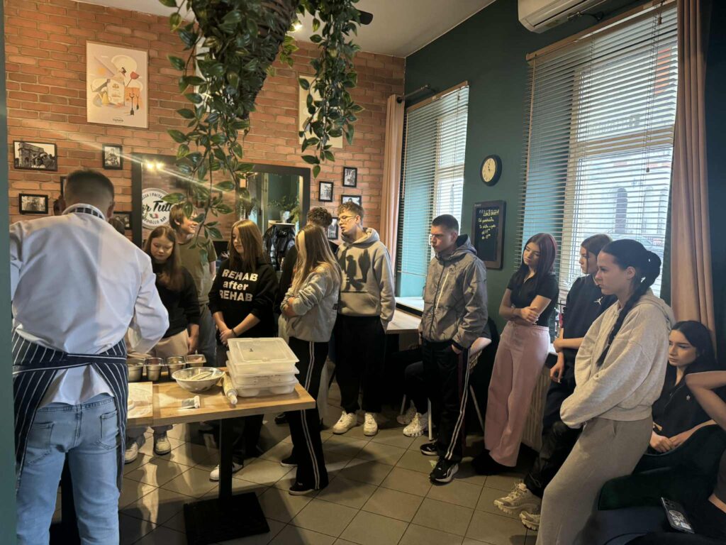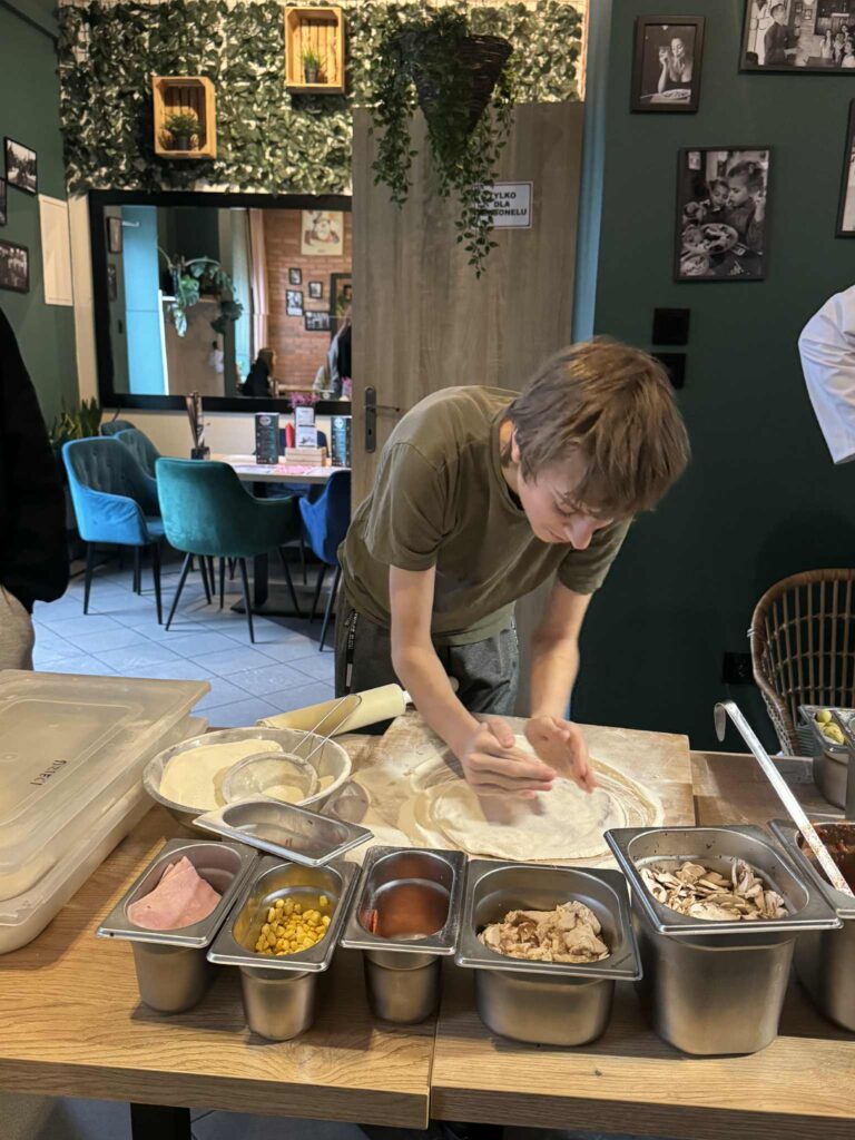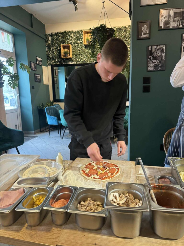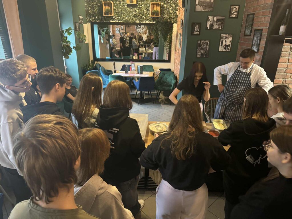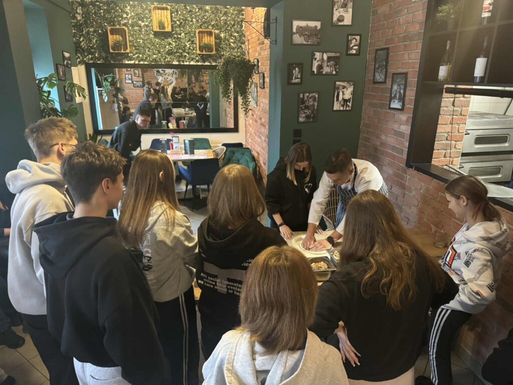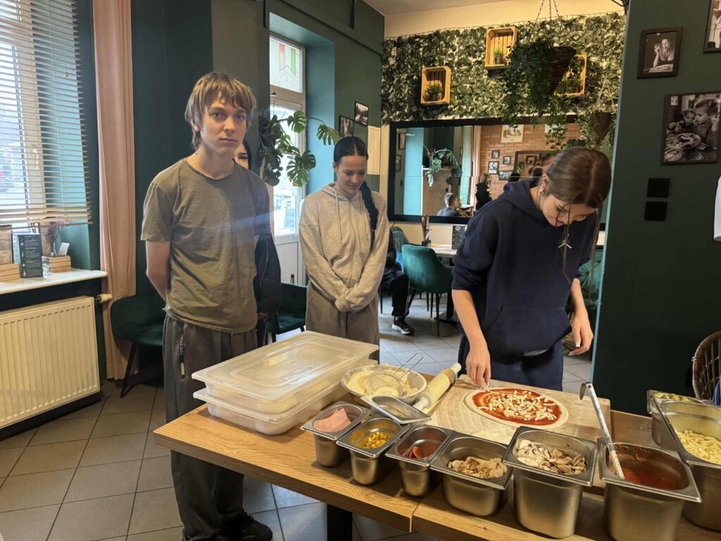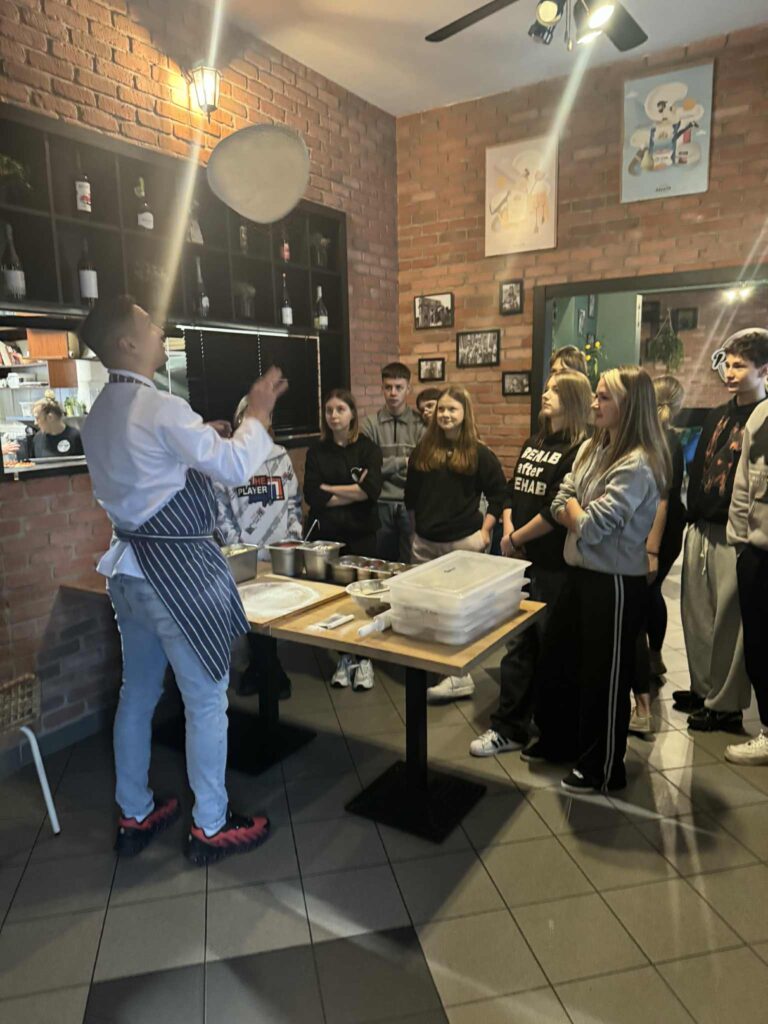 26 listopada wzięliśmy udział w warsztatach kulinarnych. Młodzież pod okiem szefa kuchni włoskiej restauracji miała okazję zgłębić tajniki robienia pizzy. Uczestnicy najpierw zdobyli wiedzę teoretyczną, później przyglądali się pracy szefa kuchni, a na koniec każdy robił pizzę dla siebie pod jego czujnym okiem. Było pysznie! Cieszymy się, że warsztaty kulinarne zawsze cieszą się dużym zainteresowaniem wśród naszej młodzieży, to inwestycja w umiejętności na całe życie.