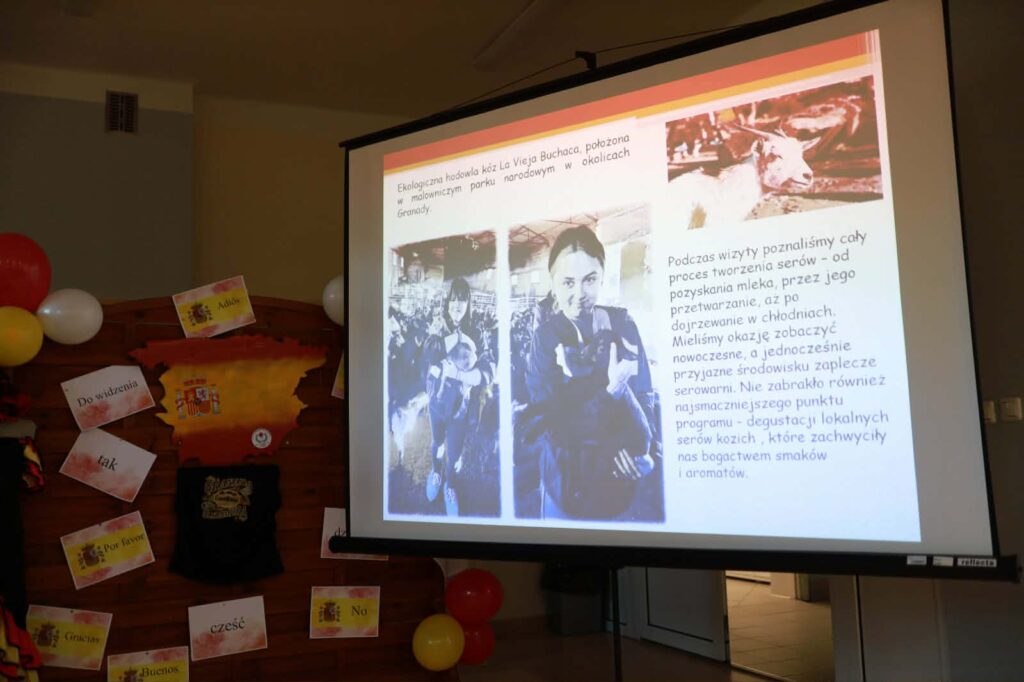 Uczniowie przygotowali i zaprezentowali tradycyjne dania kuchni hiszpańskiej, takie jak gazpacho, paella, tapas, churros oraz różnorodne przekąski oparte na lokalnych produktach Andaluzji. Po zakończeniu części warsztatowej odbyła się prezentacja powstałych potraw, połączona z oficjalnym podsumowaniem wizyty naszych uczestników w Granadzie oraz omówieniem doświadczeń zdobytych podczas mobilności.